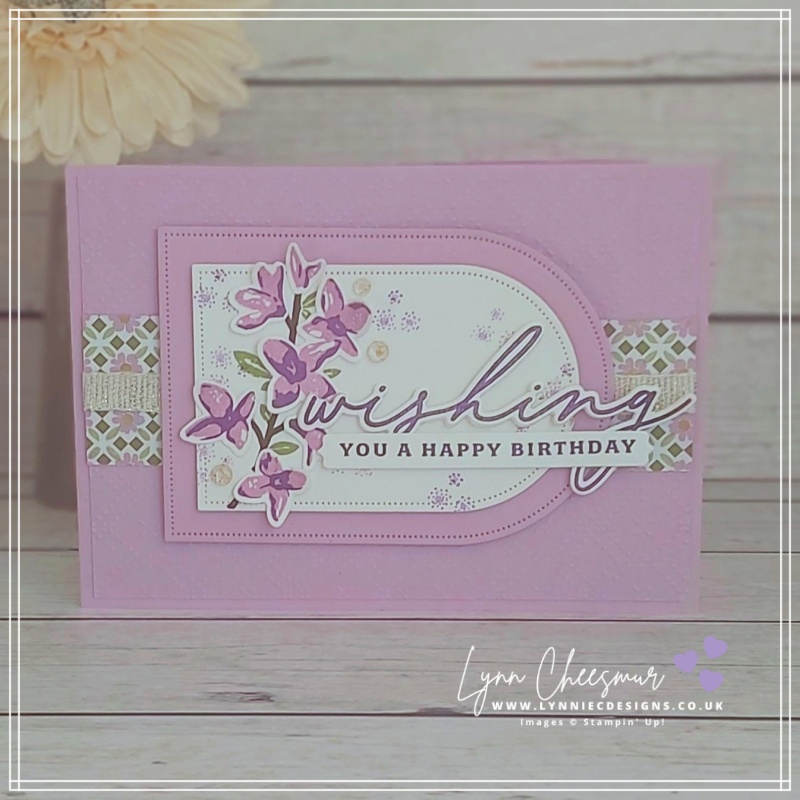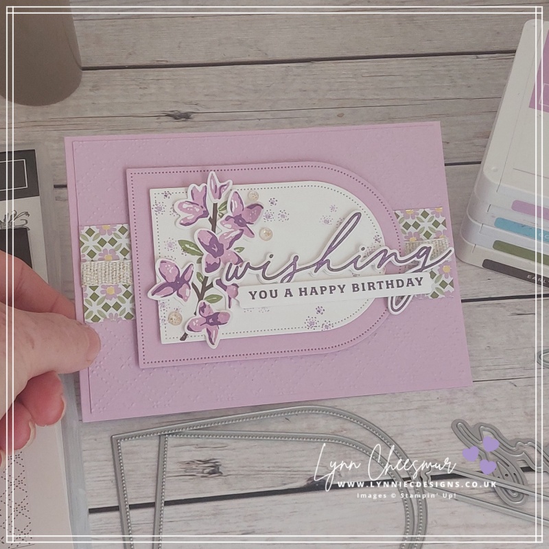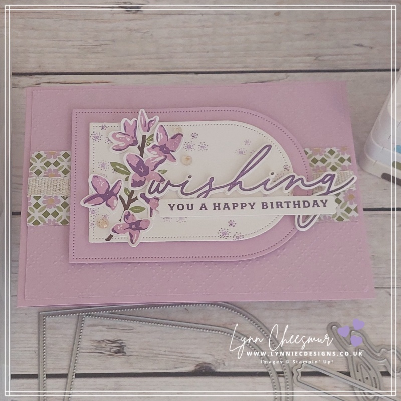 A beautiful colour pairing and gorgeous card Lynnie. I love your purple combo with the touches of gold and Old Olive leaves. A wonderful layout too with the layered Arches. Gorgeous xxx